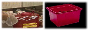 Decontaminated glassware is then placed in a labeled, closeable, puncture-resistant container. Blood in the area of the broken glass must be cleaned with an approved solution, allowing the solution to remain on the blood for a period of 10 or more minutes or as recommended by the manufacturer.
